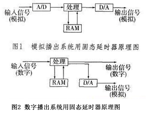 固態(tài)延時器在模擬和數(shù)字播出系統(tǒng)中的工作原理如圖1、圖2所示。