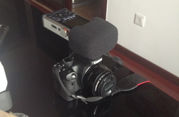 圖十二:合體圖①,手持配件不單可以用于手持,也可以配合話筒架,這么玩兒……附贈的海綿防噴罩外形并不那么好看,但是功能性是非常好的。
